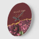 Burgundy Flower Elegance with Gold Accent Large Clock