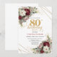 Burgundy Flowers Eucalyptus Gold 80th Birthday Invitation