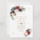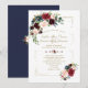 Burgundy Flowers Gold Glitter Frame Navy Wedding Invitation