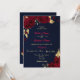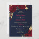 elegant luxury burgundy flowers with some gold leaves navy blue wedding invitation