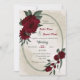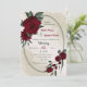 Unique pretty wedding invitation featuring romantic burgundy flowers and green leaves on a beautiful geometric frame .