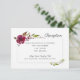 This wedding reception enclosure card features an elegant burgundy watercolor floral graphic with green leaves on a white background. Custom text allows you to add your reception details.