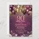 Burgundy Glitter Balloons Flowers 90th Birthday Invitation