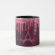 An elegant, girly and glamourous mug. Dark pink cherry coloured faux glitter drips. Deep, dark moody burgundy gradient background. Personalize and add a name and monogram letter. The name is written with a modern hand lettered style script. Light pink and burgundy coloured letters.