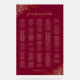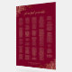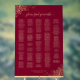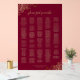 This beautiful seating chart features an elegant design with delicate golden curls and swirls in the corners on a burgundy, maroon, or wine-red background. The title is written in fancy script calligraphy and reads "please find your table." There is room for up to 300 names in alphabetical order with the names of the happy couple and wedding date at the bottom. Wonderful way to add style and class to your wedding reception while making it easy for your guests to find their seats.