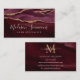 Burgundy Red Gold Agate Geode Monogram Elegant Feminine Girly Script Business Card