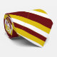 This handsome burgundy, gold, and white diagonally-striped tie will make a great addition to any suit.