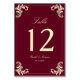 Burgundy Gold Baroque Wedding Table Number
