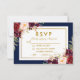 Burgundy Gold Blue Floral Wedding RSVP