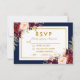 Burgundy Gold Blue Floral Wedding RSVP Card
