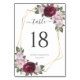 Burgundy Gold Blush Floral Wedding Table Number
