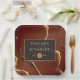 🤵 Burgundy Gold Elegant Inky Abstract Wedding Paper Plate