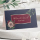 Guide your guests with style using this burgundy and gold floral wedding place card featuring navy background, blush rose, greenery, and autumn accents. Perfect for fall weddings, this elegant tent card design helps guests find their seats while adding a romantic seasonal touch to your reception décor. Coordinates beautifully with matching invitations, table numbers, menus, and signage for a cohesive autumn wedding suite.
