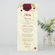 beautiful burgundy flowers and gold leaves elegant marble wedding menu.