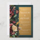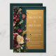 Beautiful bouquet of burgundy & cream flowers mixed with greens bordering modern fonts done in white on a deep elegant green background with faux gold background were used to create this modern wedding invitation. Perfect for any season wedding. Coordinating green reverse side. Absolutely stunning!