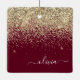 Burgundy Gold Glitter Girly Monogram Glam Ceramic Ornament