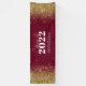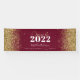 Burgundy gold glitter script class of graduation party banner design. Modern gold and glitter effect and on trend bold typography and script text. Part of a collection.