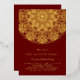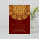 Elegant deep red eid invitation with lace printed gold foil and pretty fonts in gold foil for your Eid al-fitr feast.