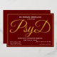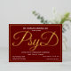 A PsyD graduation party invitation with gold foil, white text, and a burgundy background. Simply add your information, add this invitation to your cart, and celebrate this major accomplishment.