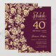Burgundy Gold Roses Surprise 40th Birthday Invitation