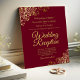 These affordable, budget friendly wedding reception invitations are the perfect choice for class, style, and beauty on a budget. Designed for guests who are invited to the reception but not the ceremony, they feature a burgundy, maroon, or wine-red background with ornate golden faux foil frills in the corners. The typography includes fancy gold script lettering for a style that is at once simple and elegant. Wonderful way to invite your friends and family to share in your joy on your special day without breaking the bank.