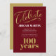 Elegant burgundy, gold, and white 100th birthday party invitation for women.