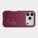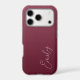 A trendy personalized burgundy iPhone case, with a soft gradient design and modern calligraphy script font.