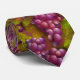 An artistic tie with a wine theme featuring a painted grape pattern in warm burgundy with touches of green and purple. Great for a wine lover!