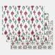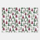 Burgundy Green Christmas Ornaments Trees Snowflake Wrapping Paper Sheet