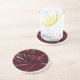 Burgundy and grey sandstone coaster features an artistic abstract ribbon composition with shades of burgundy wine maroon and grey with white accents on a burgundy wine coloured background.