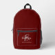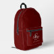Burgundy Grey White Script Monogram Name Printed Backpack