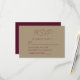 This elegant modern wedding RSVP enclosure card features burgundy text on a gold-coloured background. The title "RSVP" appears in beautiful handwriting script, with customizable text below in sans serif font. The reverse side is solid burgundy.