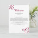 This design features the bride's and groom's initials in burgundy maroon colour as the main focus of the design. Personalized script initials using script font typography creates a perfect fusion of modern and elegance. A simple custom minimalist Autumn Fall or any other season wedding welcome itinerary design with modern burgundy maroon monogram. Matching wedding invitations and other stationery items are also available. To re-position the initials please click "Click to customize further" link when personalizing details.