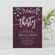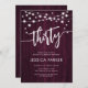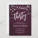 30th Birthday Party Invitation. Rustic design with burgundy maroon wood pattern. Classy invite card featuring fairy string lights and script font. Perfect for a stylish thirtieth bday celebration. Personalize with your own details. Can be customized for any age! Printed Zazzle invitations or instant download digital printable template.