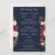 A beautiful wedding program for a beautiful wedding. Decorated with pink and burgundy peony florals , this pink blush and burgundy marsala florals wedding ceremony program will add elegant or modern details to your special day. Available with a white, pink, black, burgundy (maroon), and dark burgundy background. See our Burgundy Marsala Collection for all of the colours. With a navy blue background