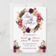 This trendy rustic Save the Date card features pretty watercolor flowers in vibrant shades of Marsala, wine, deep green, and red, with matching calligraphy typography in a floral wreath. Easy to personalize with custom options.