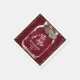 Rustic burgundy wedding paper napkins featuring a mason jar and burlap hearts on a barn wood background.