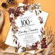 Burgundy Mauve Ivory Fall Floral 100th Birthday Invitation