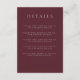 Burgundy Merlot Wedding Details Enclosure Card