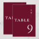 These burgundy minimalist modern monogram double-sided table numbers are perfect for all celebrations. Designed by Thisisnotme©