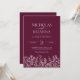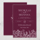 Burgundy Minimalist Wildflower Wedding Monogram Invitation