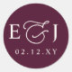Burgundy Modern Initials Monogram Wedding Classic Round Sticker