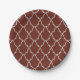 Burgundy Moroccan Lattice Pattern Paper Plate