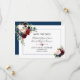 Elegant card design featuring gorgeous watercolour Burgundy blush flowers bouquets, floral divider, beautiful blue dotted frame on white background; on the bak the same flowers on a navy blue background. Use Customize tool to add your info, make changes. For matching items, please, visit my Burgundy Navy Blue Floral Frame Collection.