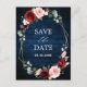 Burgundy Navy Blush Floral Geometric save the date Postcard