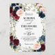 Elegant and modern romantic geometric watercolor floral wedding invitation card with QR code on back features a beautiful burgundy / marsala , blush pink, peach , navy blue watercolor roses with matching foliage on navy blue rustic wood background and gold frame. Perfect for a fall / midsummer wedding. Please find more matching designs and variations from my "blissweddingpaperie" store. And feel free to contact me for further customization or matching items