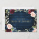 Elegant and modern romantic geometric watercolor floral will you be my maid of honour invitation features a beautiful burgundy / marsala , blush pink, peach , navy blue watercolor roses with matching foliage on navy blue rustic wood background and gold frame. Perfect for a fall / midsummer wedding. Please find more matching designs and variations from my "blissweddingpaperie" store. And feel free to contact me for further customization or matching items
