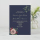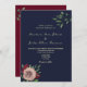 Celebrate your special day with this elegant fall wedding invitation featuring a deep navy background, burgundy accents, and watercolor floral details. The design combines romantic blush roses with autumn greenery, creating a timeless look that is perfect for fall and winter weddings.