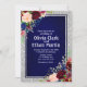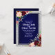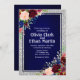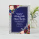 A luxurious invitation featuring your details in white text on navy surrounded by a silver glitter frame with luscious rose clusters in rich shades of burgundy, pink and blue. The card reverses to a small bouquet in the centre.
