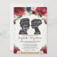 This beautiful wedding invitation features hand painted watercolor floral in burgundy, navy and blush elegantly combined with vintage silhouettes of Elizabeth Bennet and Mr Darcy, two of the most beloved and iconic characters in English literature, from the romantic novel "Pride and Prejudice" written by Jane Austen. Each silhouette bears romantic quotes from the novel, written in whimsical letters. You can personalize the names on the silhouettes with the names of the bride and groom. The background color of the invite is set to white, but feel free to choose a new fill color in order to match it to your wedding theme. Use the text fields to add your details and please click the "Customize Further" button to re-arrange elements if required.